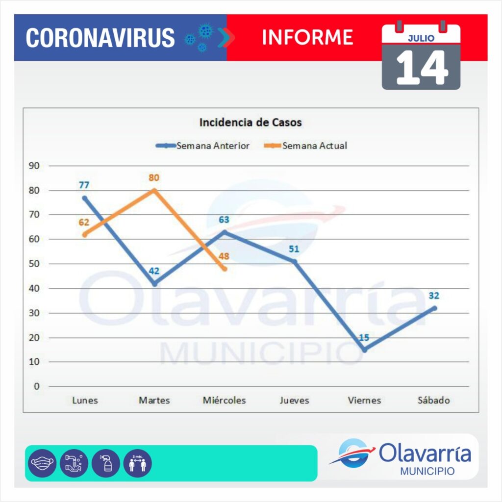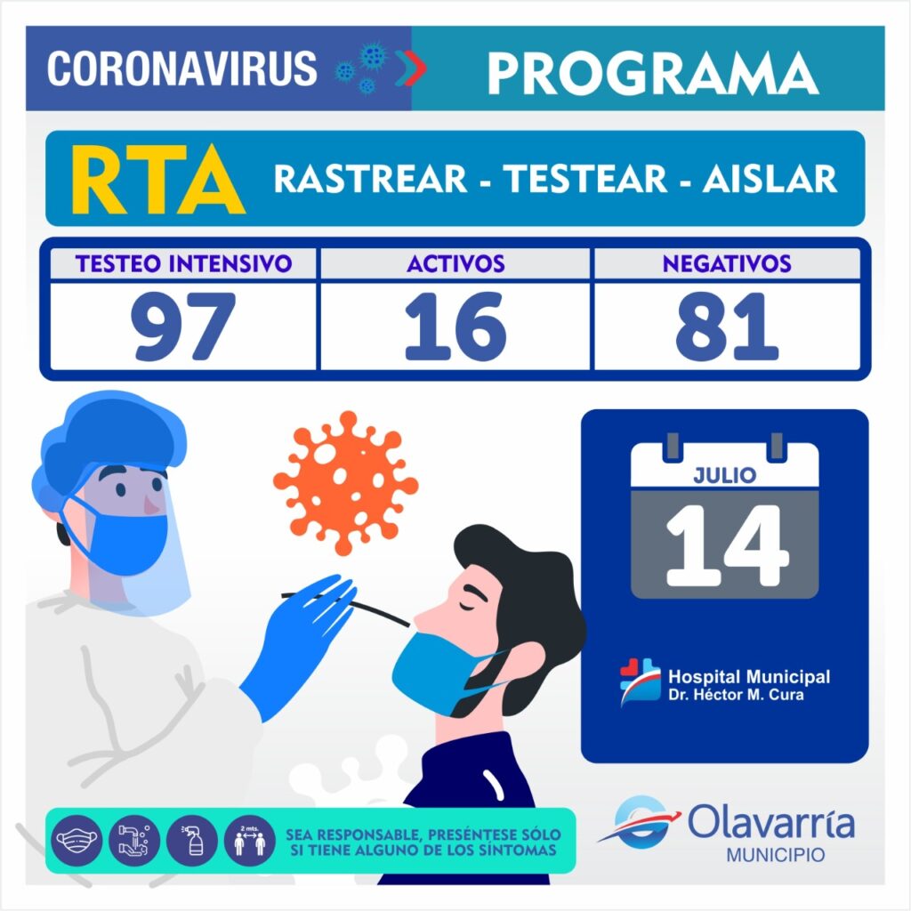 En la fecha de hoy 14 de julio se registraron 48 casos positivos, 72 altas médicas y 172 descartados.