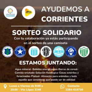 #AyudemosaCorrientes: se sortearán camisetas de fútbol de clubes locales, en el marco de la campaña la juventud de Juntos por...