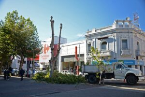 Realizan tareas de poda en la zona céntrica en el veredón municipal, sobre Rivadavia, entre Belgrano y San Martín, con...
