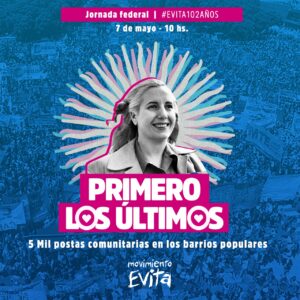 El Movimiento celebra los 102 años de Evita, a partir de las 10 de la mañana se realizará un acto...