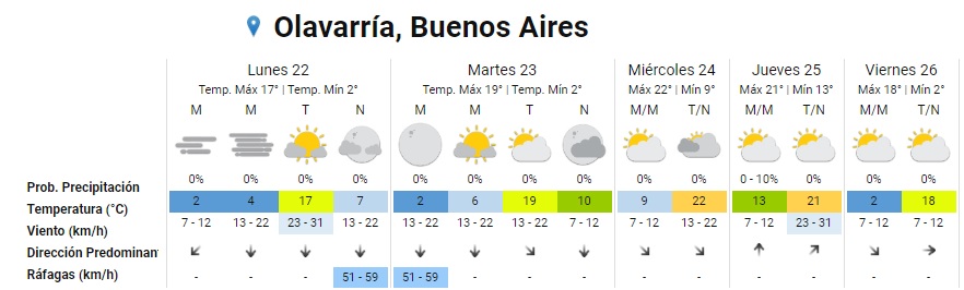 Pronóstico del tiempo en Olavarría para la tarde y la noche