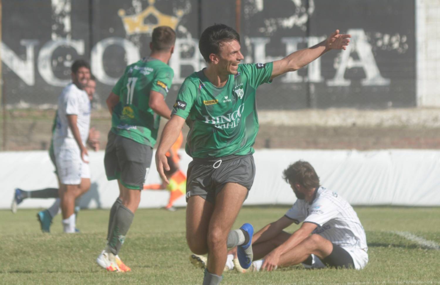 Arriba, el toque de zurda para el gol de Gabriel Ianni. Abajo, el festejo del goleador.