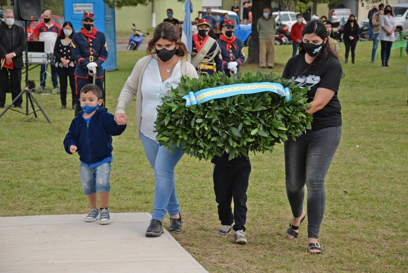 Finalmente, el intendente Ezequiel Galli junto con el niño Federico Cerrudo (quien es nieto de ex combatiente) colocaron la palma al pie del monumento en representación de la Municipalidad de Olavarría.