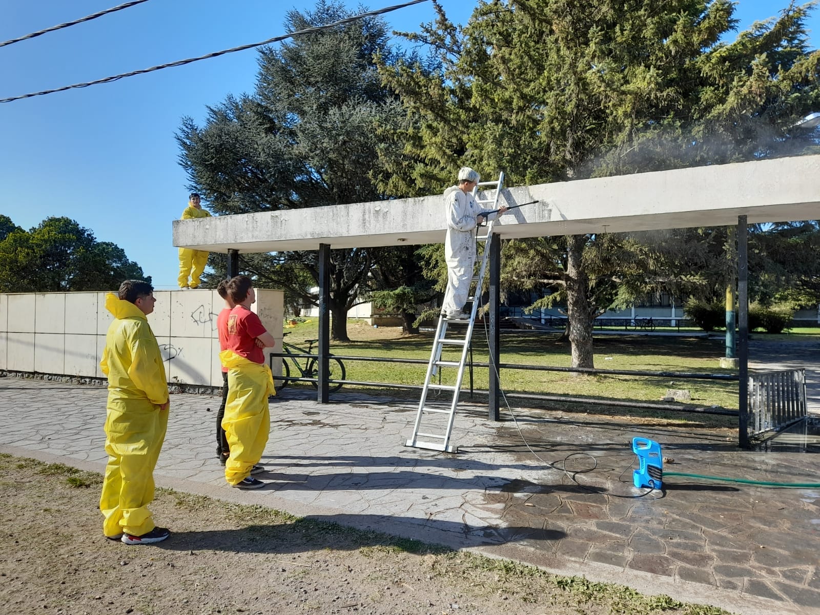 • En la jornada de “el día de hacer el bien” pintaron el frente de industrial