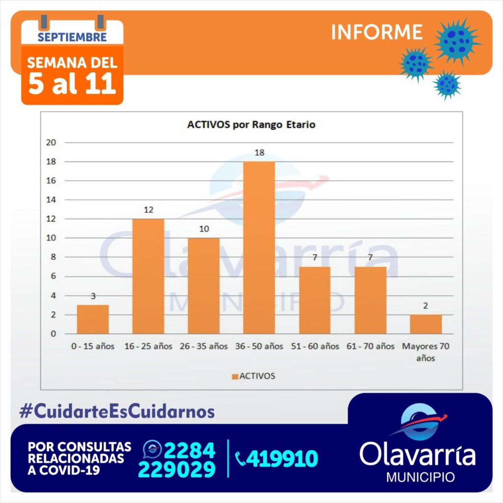 En el transcurso de la semana, 57 personas recibieron el alta médica, por lo que a este sábado son 59 las personas que tienen Coronavirus en Olavarría, con un promedio de edad de 40 años. El 85% del total, tiene menos de 60 años
