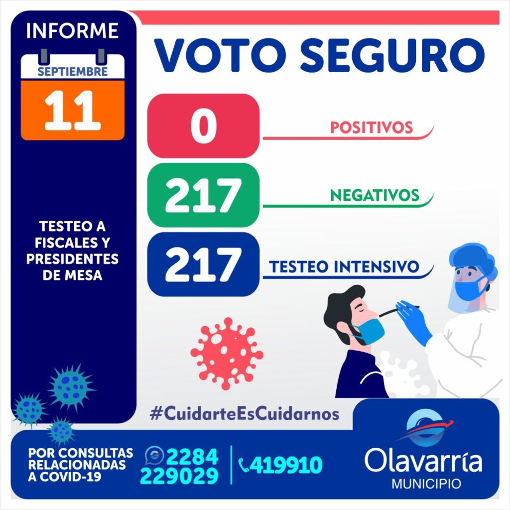 La Secretaría de Salud informó que los 217 hisopados que se realizaron en la mañana de este sábado -a fiscales y autoridades de mesa que participarán del acto eleccionario este domingo- fueron negativos.