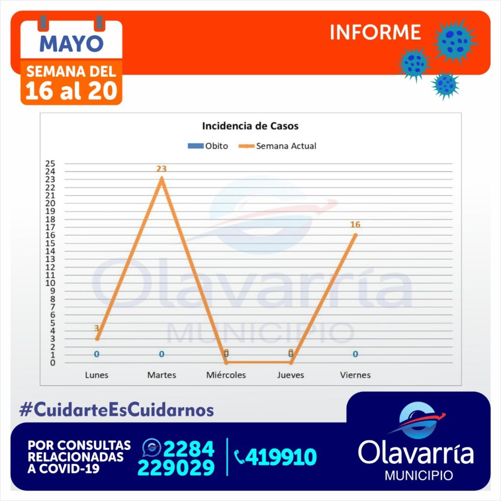 En una semana se registraron 42 casos positivos de coronavirus, además informaron que hay dos personas internadas en el Hospital. La Secretaría de Salud del Municipio emitió el informe sanitario correspondiente a la semana del 16 al 20 de mayo de 2022.