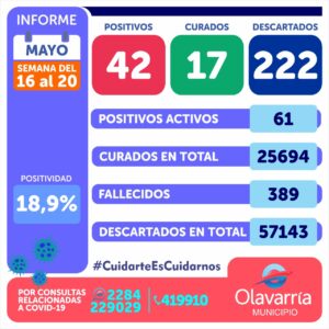 • En una semana se registraron 42 casos positivos de coronavirus