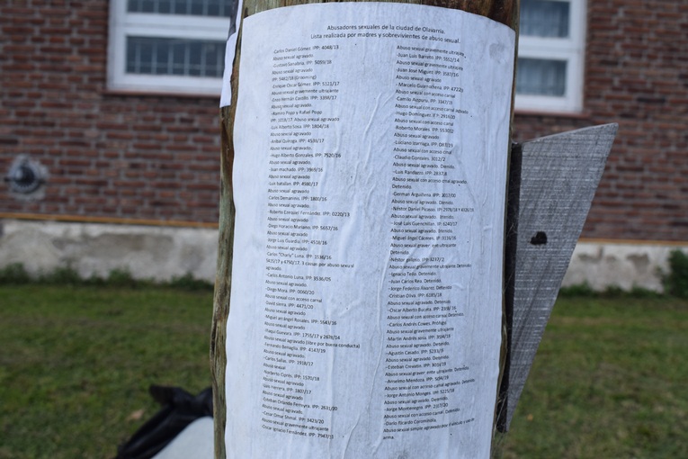 Este miércoles colocaron pegatinas y un listado de abusadores en Olavarría