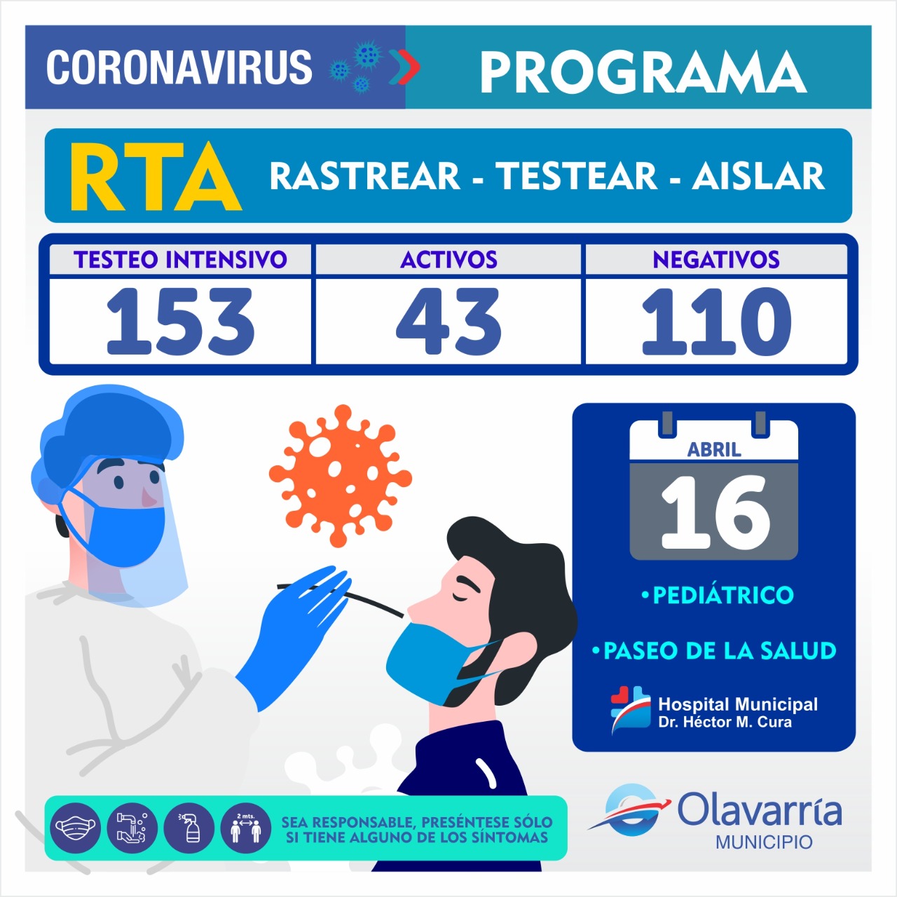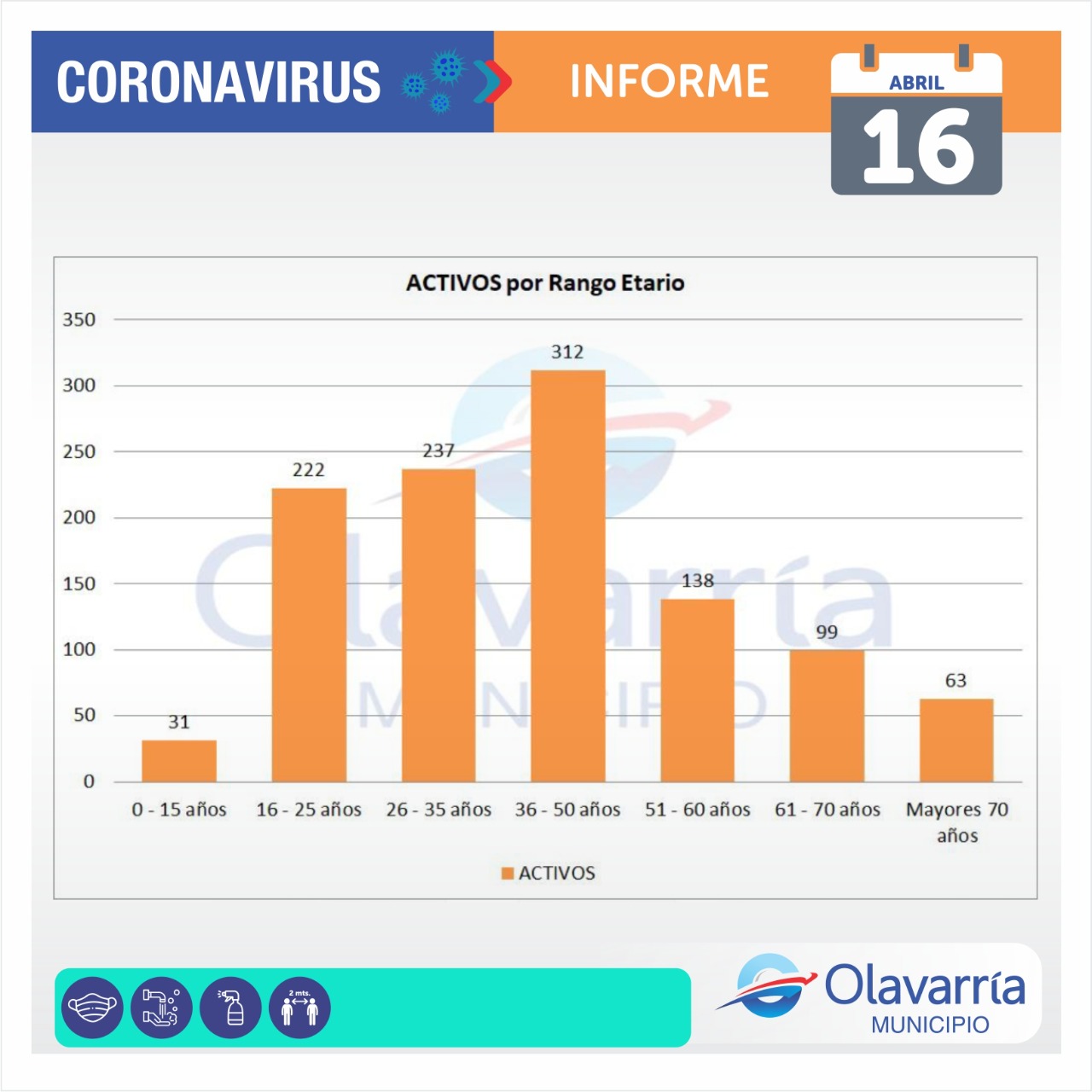 En la fecha de hoy 16 de abril se registraron 128 casos positivos, 155 altas médicas y 290 descartados.