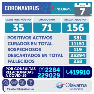• Fallecieron cuatro pacientes con Covid-19 y se registraron 35 casos positivos