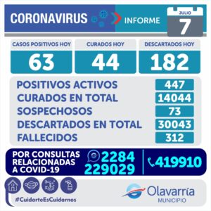 • Fallecieron dos pacientes con Covid-19 y se registraron 63 casos positivos
