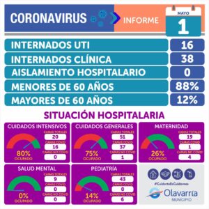 • Fallecieron dos personas con Covid-19 en el primer día de mayo y se registraron 52 casos positivos