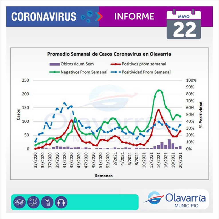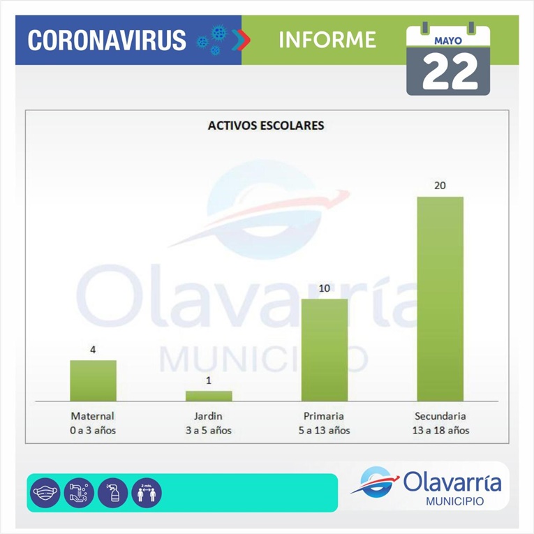En la fecha de hoy 22 de mayo se registraron 80 casos positivos, 36 altas médicas y 66 descartados.