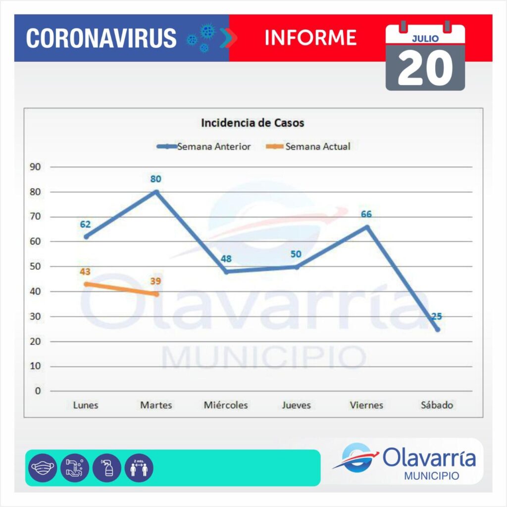 En la fecha de hoy 20 de julio se registraron 39 casos positivos, 32 altas médicas y 141 descartados.