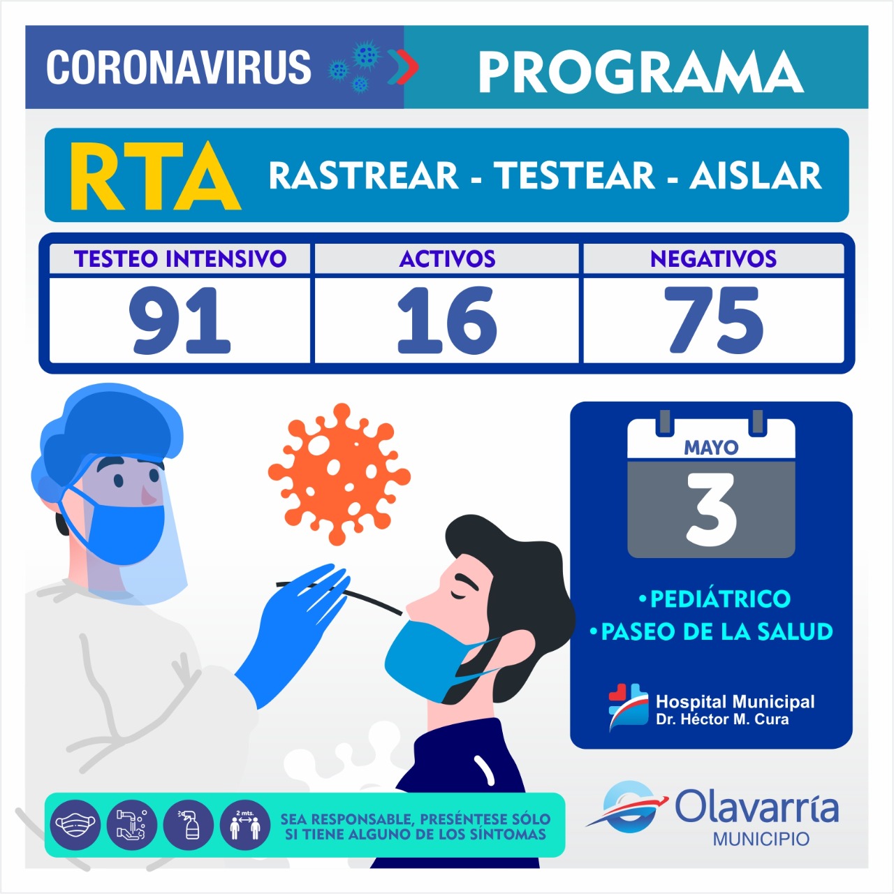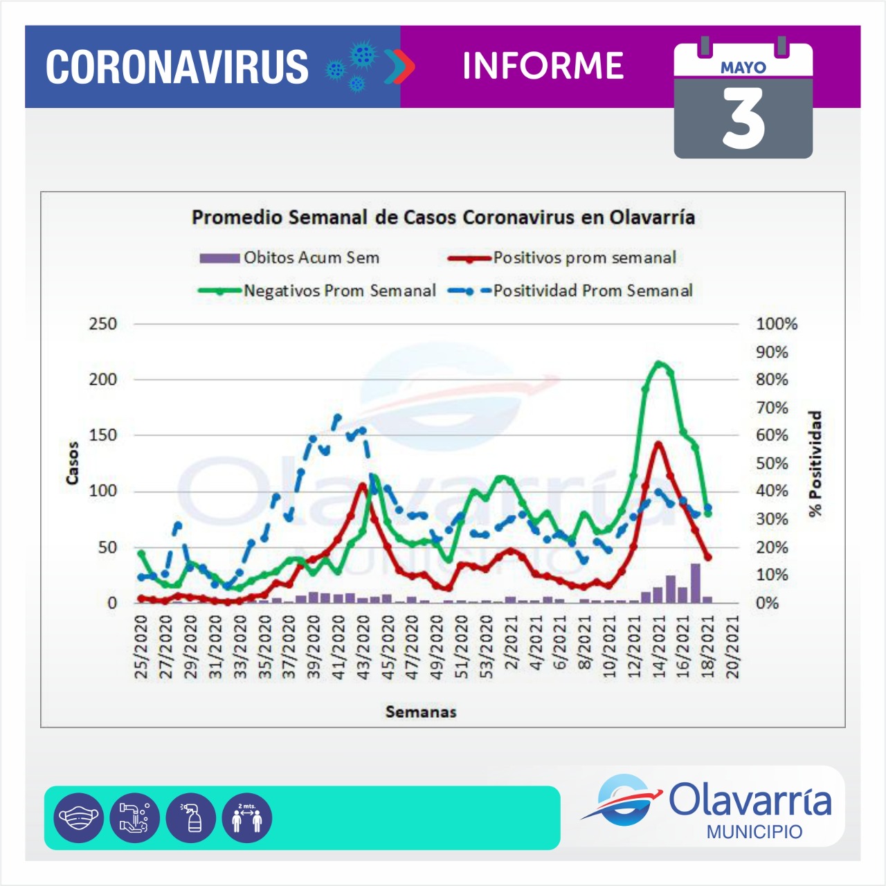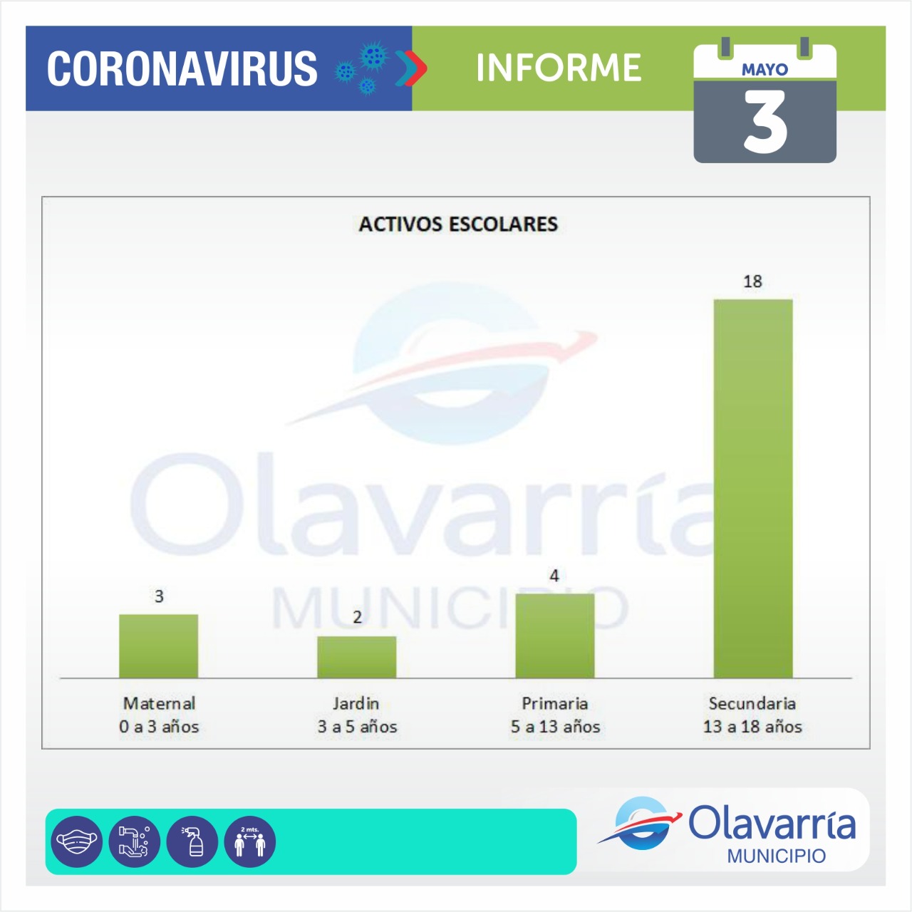 Este lunes 3 de mayo se registraron 79 casos positivos, 121 altas médicas y 160 descartados.