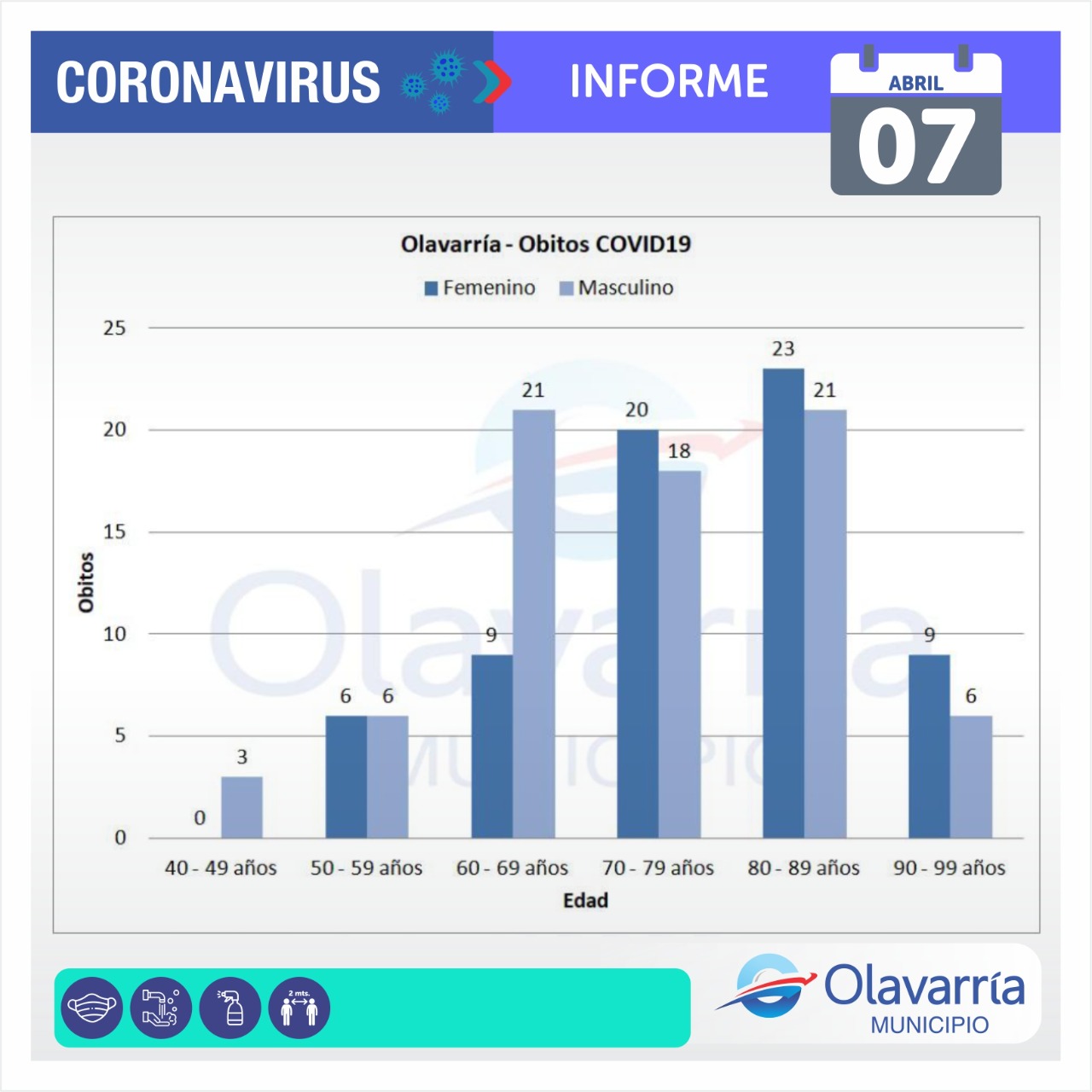 El Municipio tiene 995 positivos activos, 8069 curados en total, 18489 descartados desde el inicio de la pandemia, 127 sospechosos y 142 fallecidos.