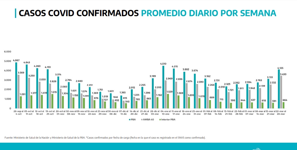 Al referirse al promedio diario de casos, el funcionario de Axel Kicillof sostuvo que en la Ciudad de Buenos Aires la curva “se está elevando a un ritmo muy grande”, lo que luego termina impactando en el Conurbano. “Este año ya lo sabemos, pero con la diferencia de que este año estamos empezando en un nivel alto de contagios y que ahora están circulando algunas cepas nuevas”.