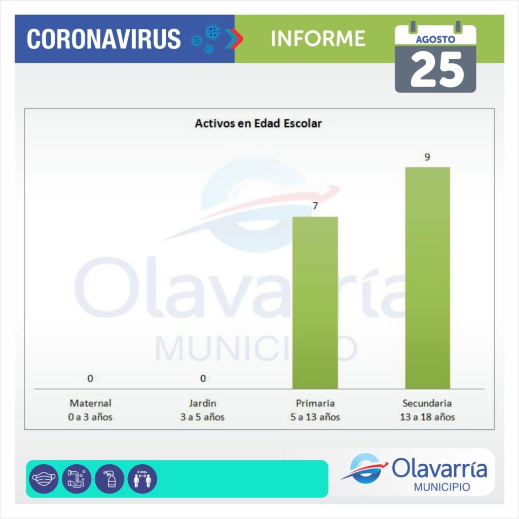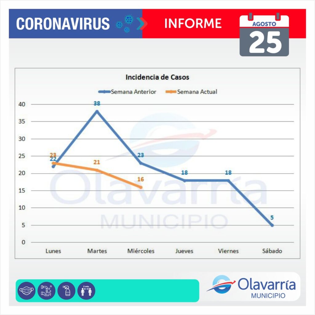 En la fecha de hoy 25 de agosto se registraron 16 casos positivos, 22 altas médicas y 180 descartados.