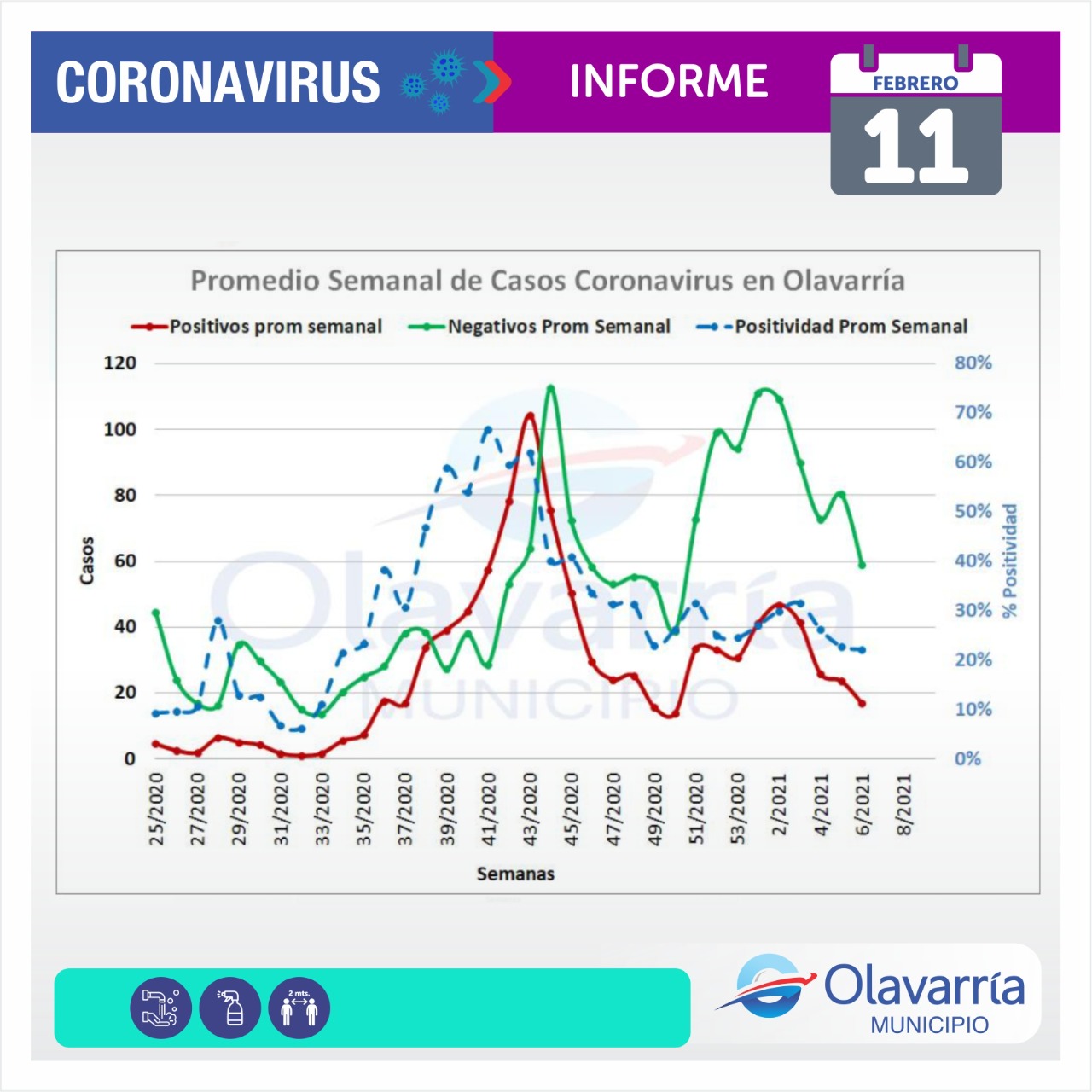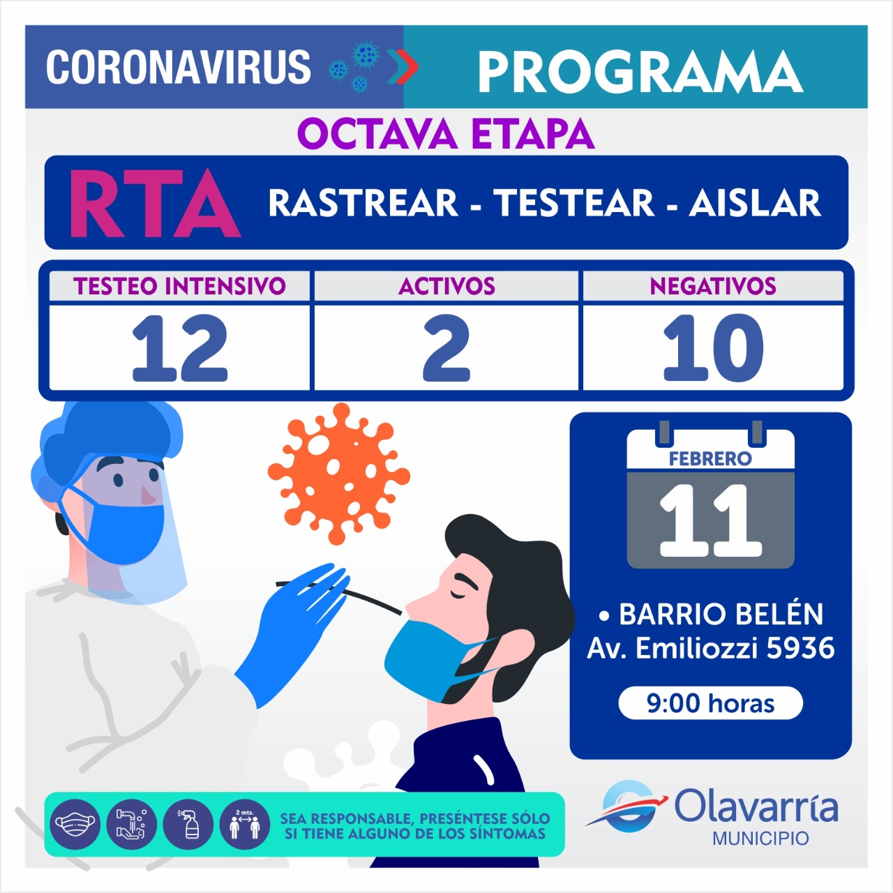 En la fecha de hoy 11 de febrero se registraron 19 casos positivos, 17 altas médicas y 68 descartados.
