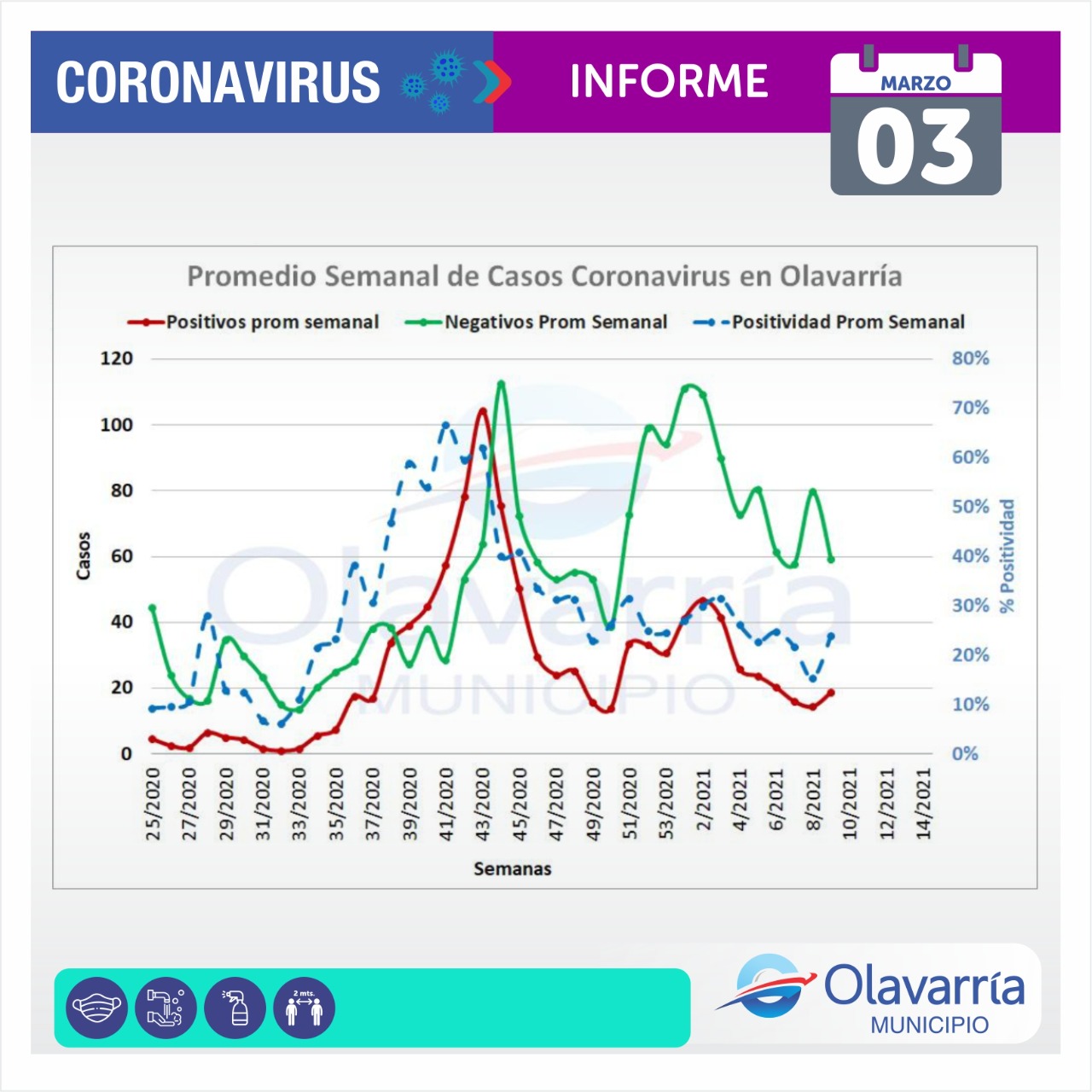 En la fecha de hoy 3 de marzo se registraron 22 casos positivos, 29 altas médicas y 77 descartados.