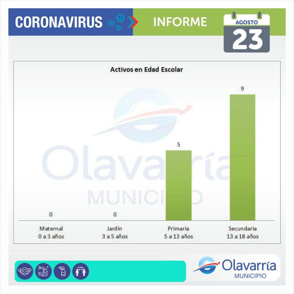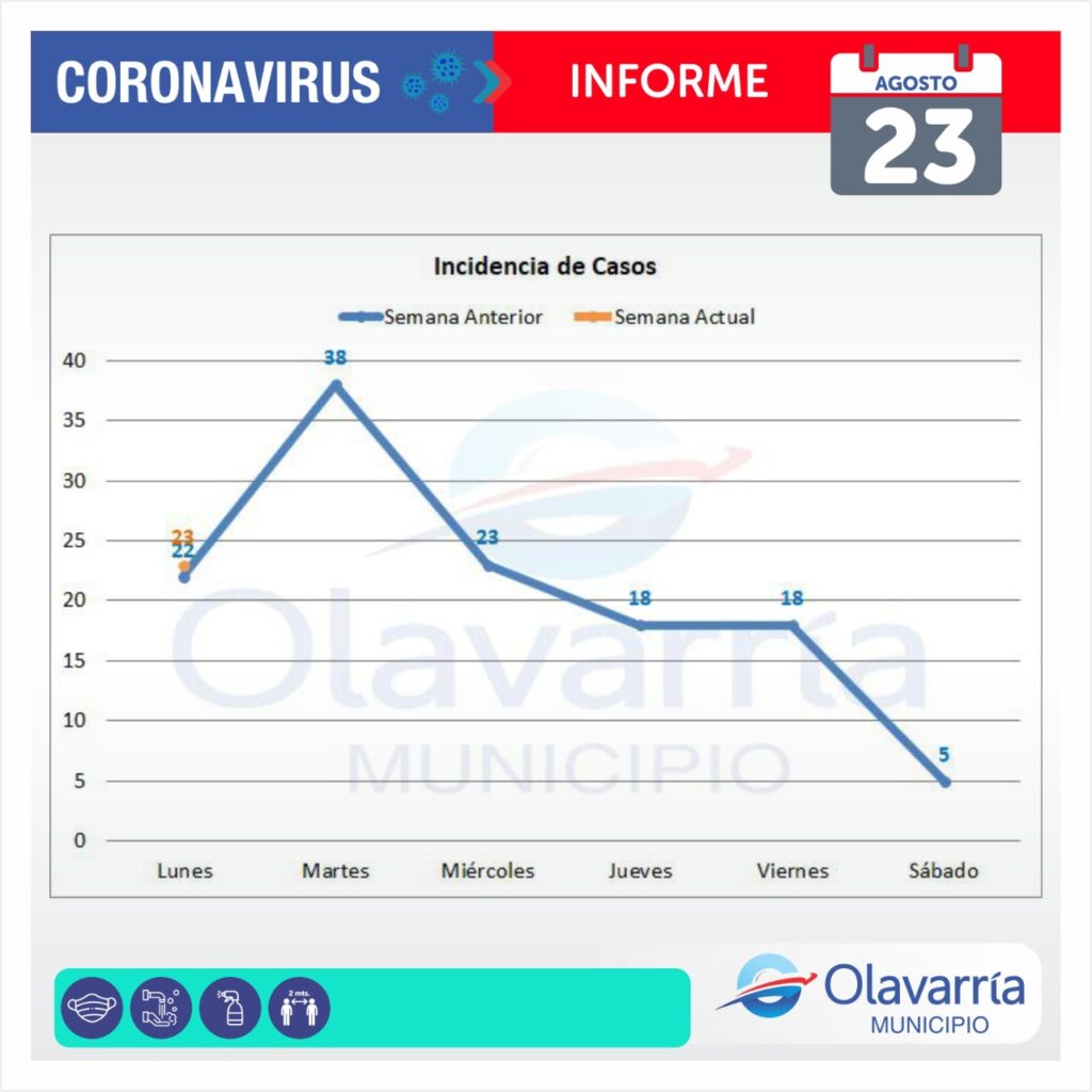 En la fecha de hoy 23 de agosto se registraron 23 casos positivos, 14 altas médicas y 210 descartados.