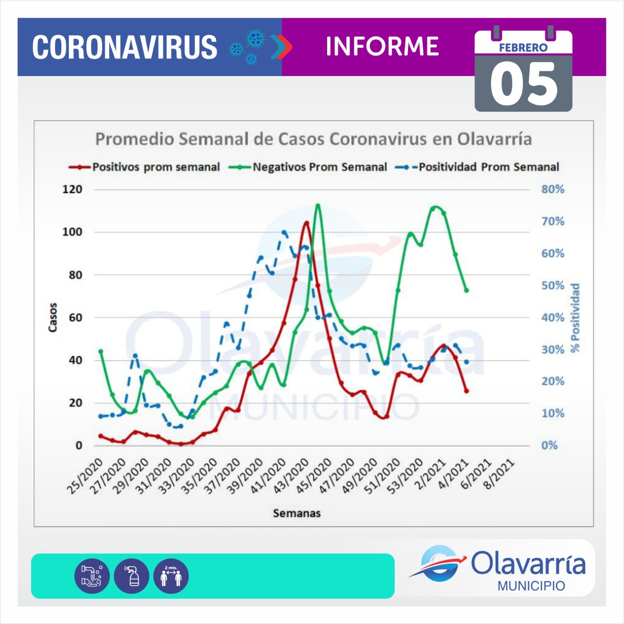 En la fecha de hoy 5 de febrero se registraron 29 casos positivos, 18 altas médicas y 105 descartados.