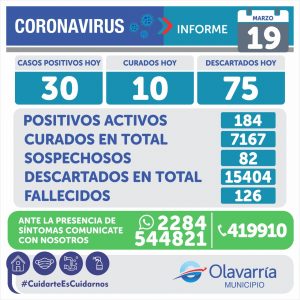 • Informe Sanitario: Se registraron 30 casos positivos de Covid-19 y 10 altas médicas
