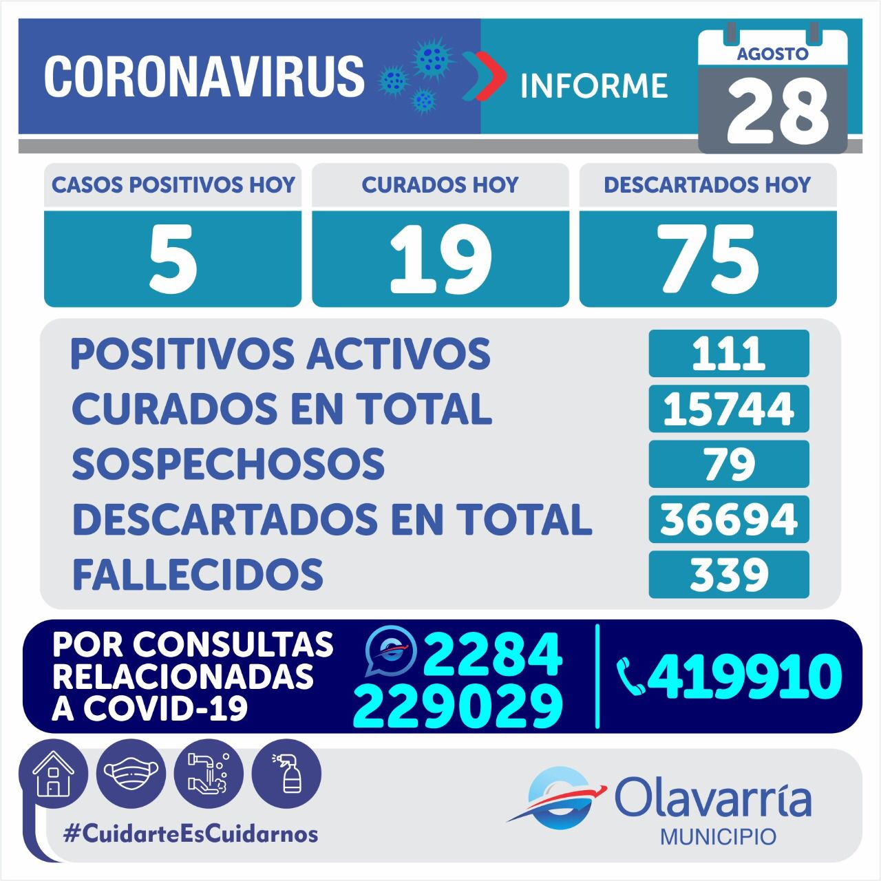 • Informe sanitario: Se registraron sólo 5 casos positivos de coronavirus