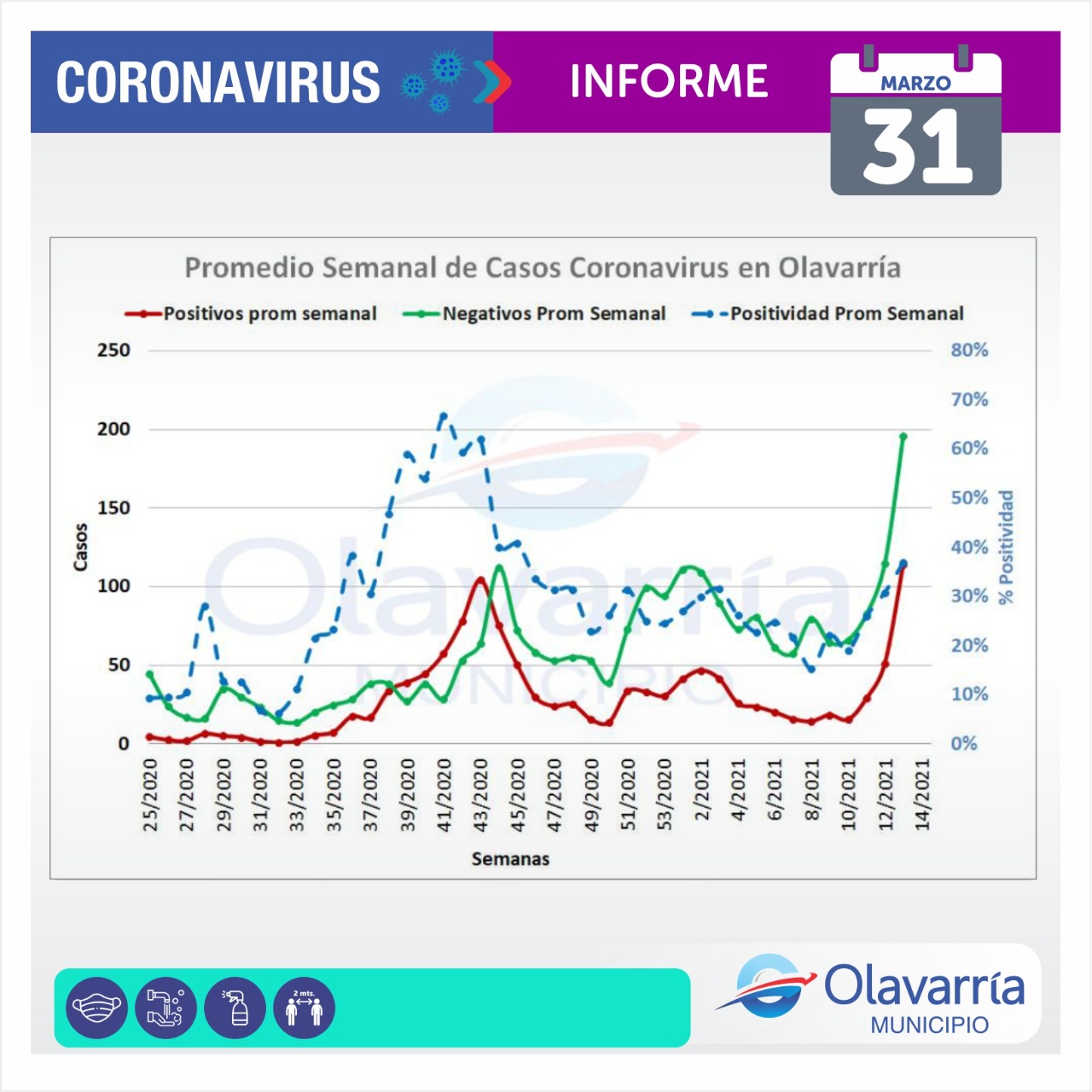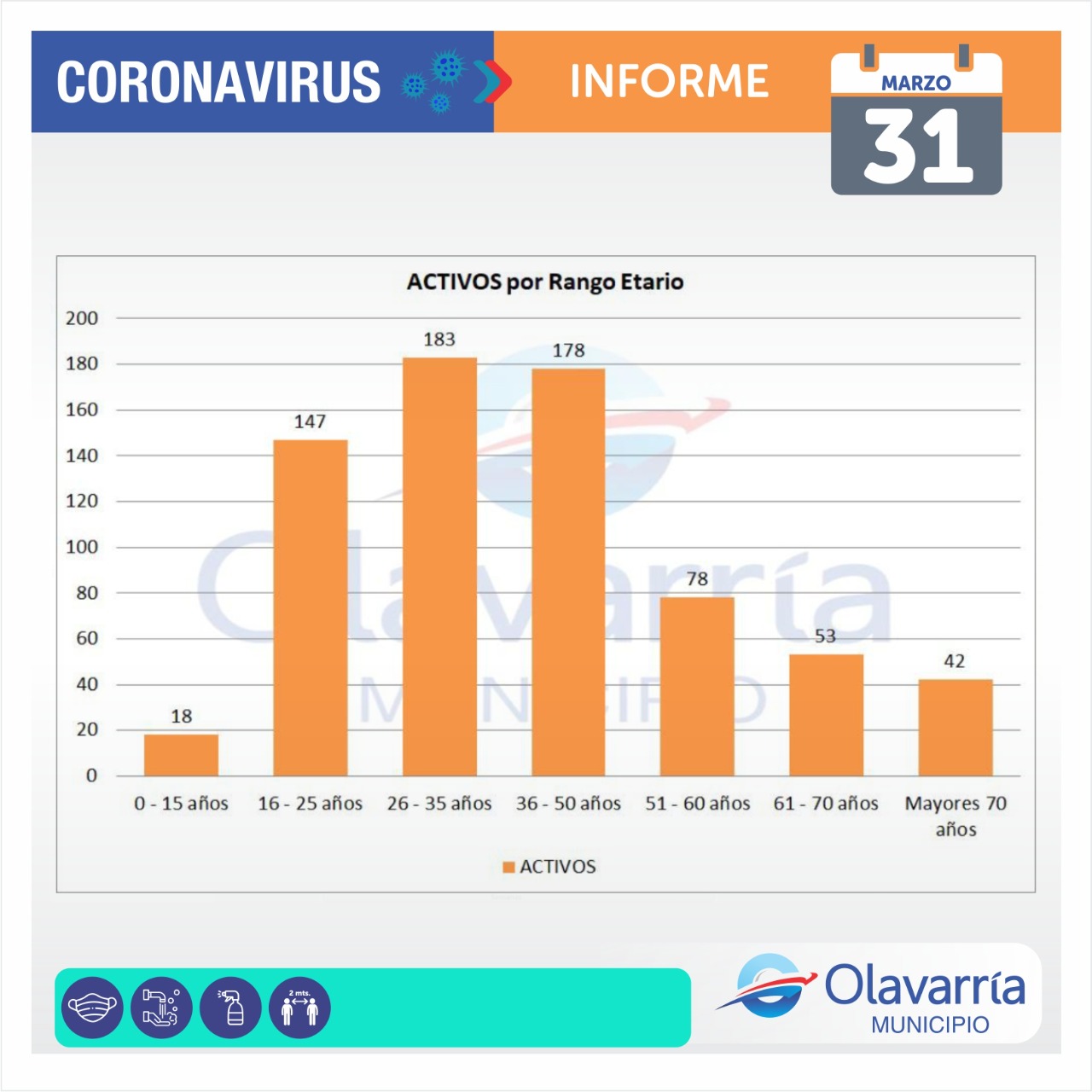 En la fecha de hoy 31 de marzo se registraron 132 casos positivos, 50 altas médicas y 300 descartados.