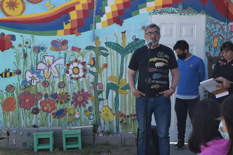“El respeto es eso, que muchas voluntades hagan una obra y participen no solo en la diversidad cultural, en la diversidad social, política, económica, educativa, y con el aporte de todos pudimos hacer esto. Agradezco a los estudiantes de artes visuales, profesores que incansablemente participan de los proyectos, es una forma de devolverle a la comunidad a través de estos aportes que hacen para que la escuela sea una realidad, una escuela que pueda funcionar, a través de estos aportes y trabajos es una forma mínimamente de devolver lo que hace que nosotros existamos”.