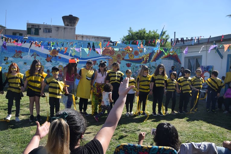 Por otra parte una de las profesoras leyó un comunicado de la Directora Mirta Millán quien se encuentra de Licencia por cubrir un cargo, “les envío mis cálidos saludos y felicitaciones por la inauguración del mural realizado en la Institución, por razones laborales no pude hacerme presente debido a que estoy desempeñándome en el Ministerio de mujeres, políticas de género de la provincia de Buenos Aires. Lo cual me impide llegar en estos momentos tan especiales para compartir con ustedes, celebro la inauguración y el compromiso de la realización del mural colectivo, los felicito a todos a los que dieron su aporte para la realización del mismo”.