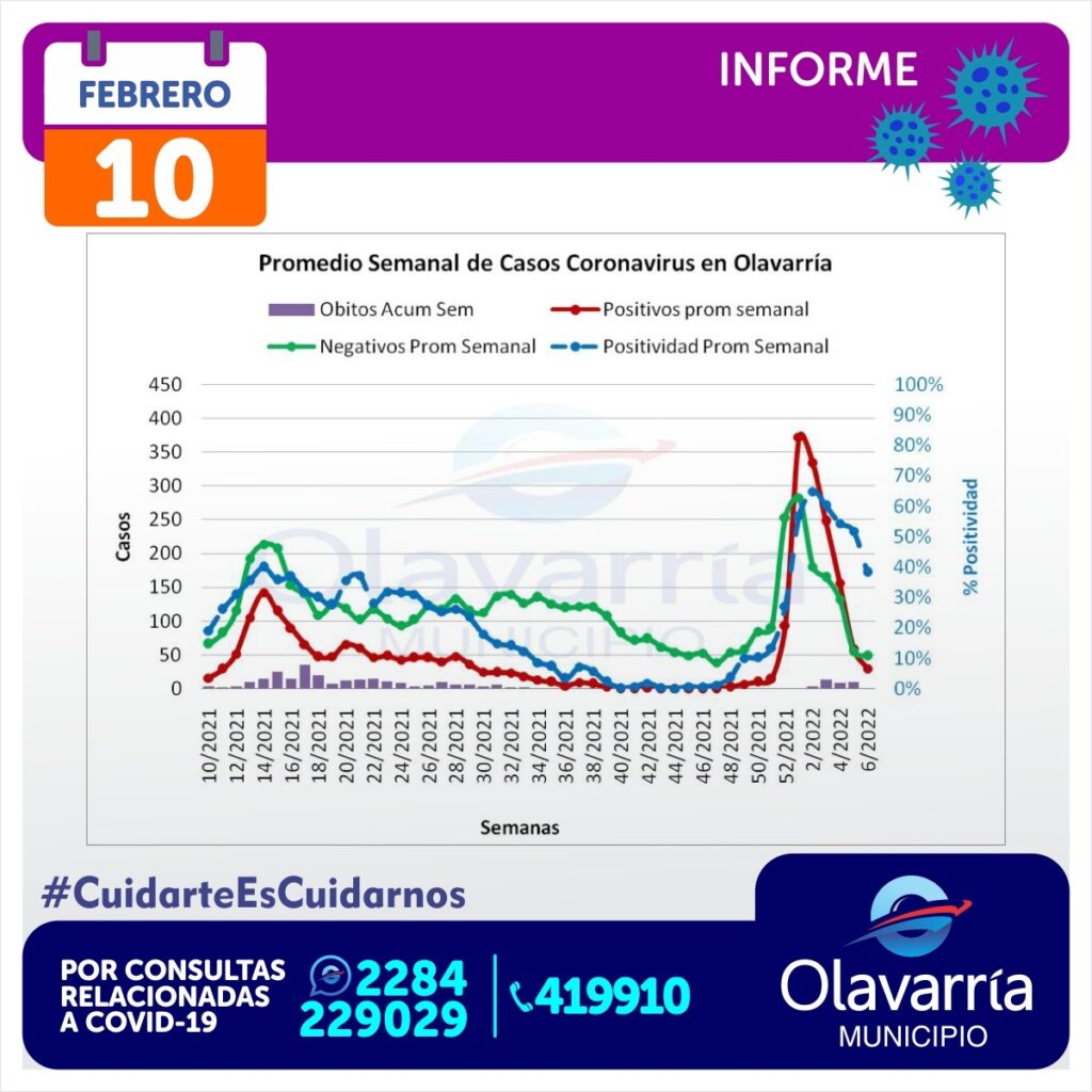 La positividad de este jueves disminuyó y hay 433 casos activos en Olavarría, así lo informó la Secretaría de Salud Municipal en el parte emitido este jueves 10 de enero. Un dato importante a remarcar es que no se han informado los resultados de los autotest que se venden en farmacias.