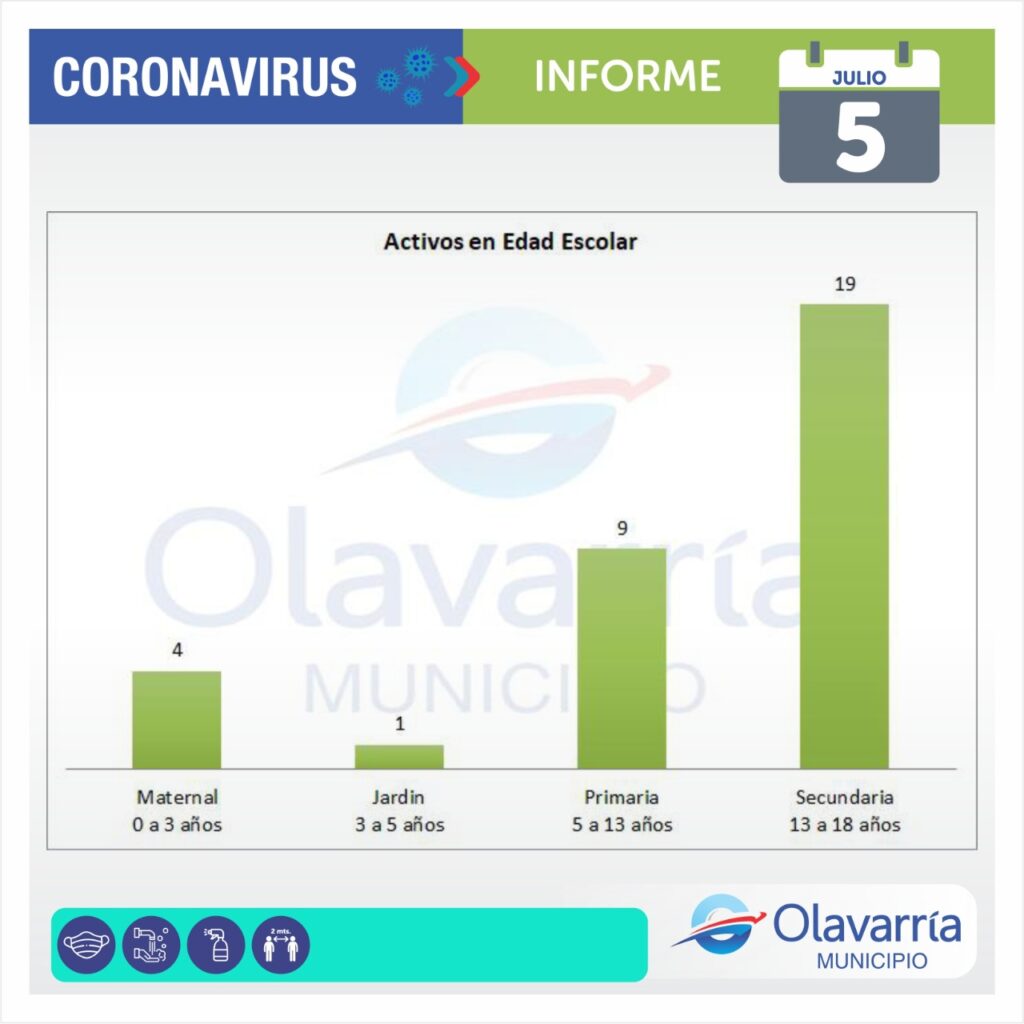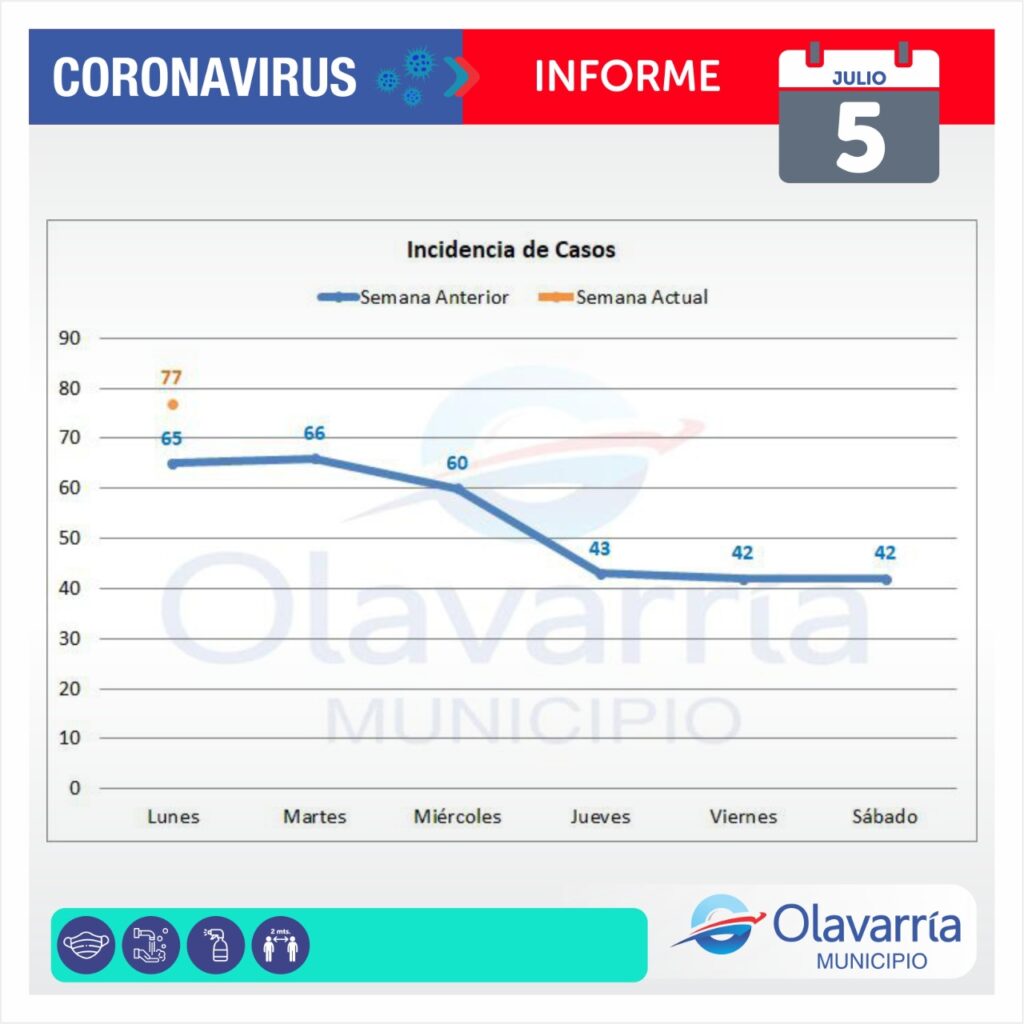 En la fecha de hoy 5 de julio se registraron 77 casos positivos, 76 altas médicas y 170 descartados.