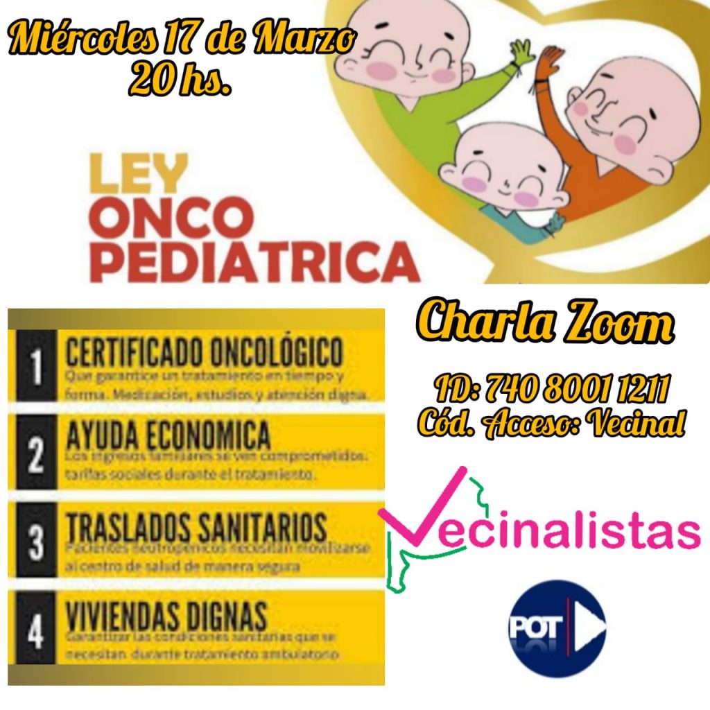 Realizarán una charla por zoom por la ley “onco pediatría” nacional. Desde el POT anunciaron una charla con los papás de UMA así como también madres y padres autoconvocados para tratar sobre la ley Oncopediatrica.