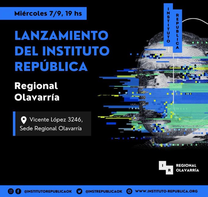 Se lanza la sede regional del Instituto República en Olavarría, será este miércoles  7 de septiembre a las 19 horas, con la presencia del intendente municipal Ezequiel Galli, se realizará el lanzamiento en Vicente López 3246 del lanzamiento de la sede regional del Instituto República en Olavarría.