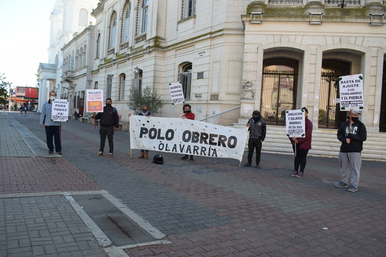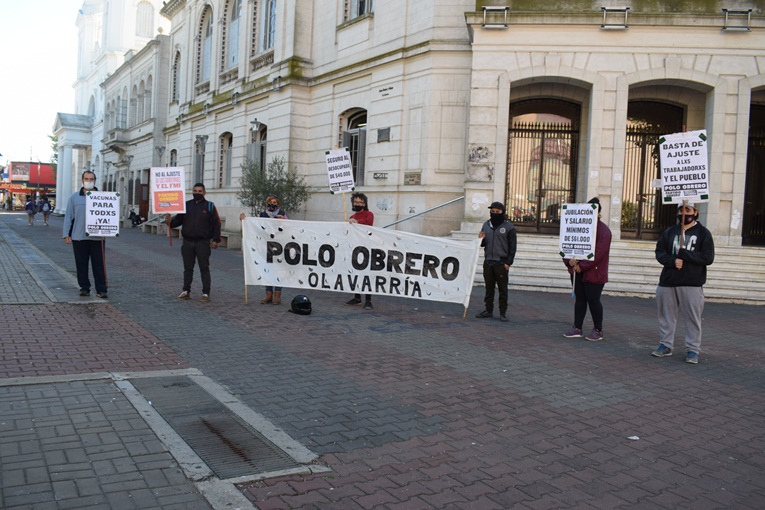 Se realizó la concentración por vacunas para todos y salario igual a la canasta familiar, “en Olavarría nos movilizamos para respaldar la de nación, y exigir al Gobierno Municipal que tome cartas en el asunto ante la situación de pandemia sanitaria que estamos viviendo, pero también ante la pandemia social, porque en los barrios no deja de crecer la pobreza, el hambre, la miseria. Los comedores populares en los barrios están recibiendo cada vez más familias que necesitan un alimento, un plato diario y el Gobierno Municipal no está haciendo nada”.