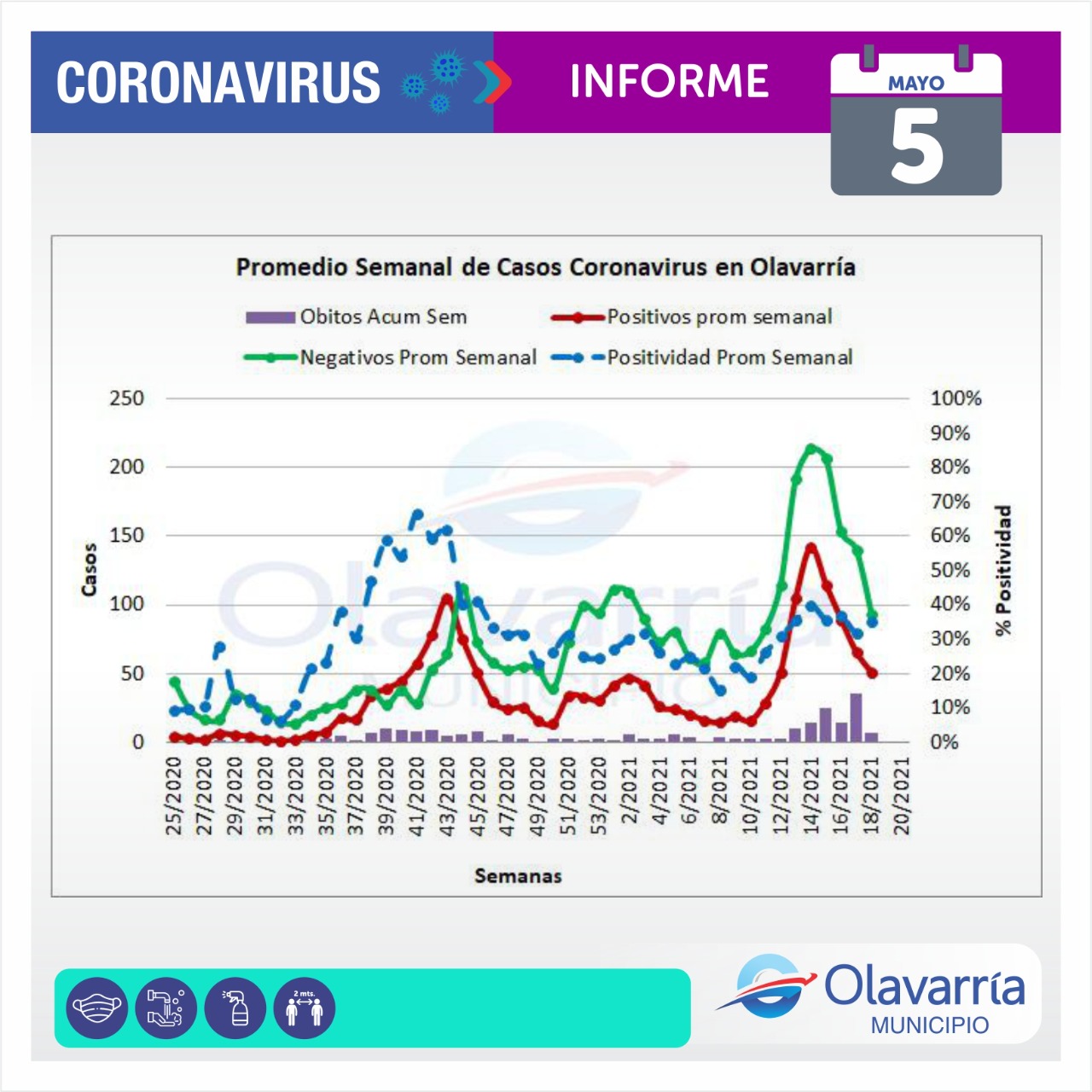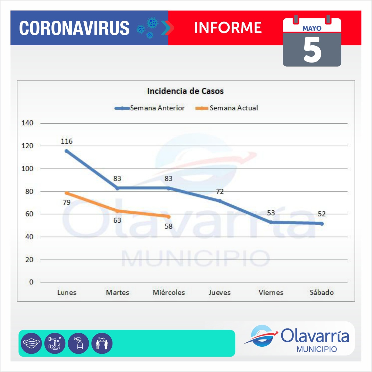 Este miércoles 5 de mayo se registraron 58 casos positivos, 104 altas médicas y 101 descartados.