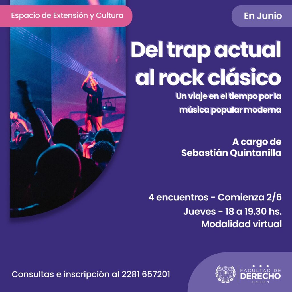 Taller del trap actual al rock clásico virtual, la facultad de derecho UNICEN tiene abierta la inscripción al Taller: “Del Trap actual al rock clásico, un viaje en el tiempo por la música popular moderna” a cargo de Sebastián Quintanilla.