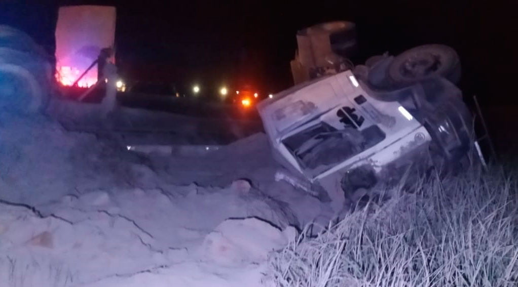 El accidente fue reportado esta madrugada en la zona de la ruta provincial 65, en inmediaciones al monte La esperanza y la bajada a Villa lindante entre las localidades de 9 de Julio y Bolívar. El camionero , chofer de la empresa DP de nuestra ciudad y que transportaba cemento terminó con un golpe en la cabeza y lesiones costales leves.