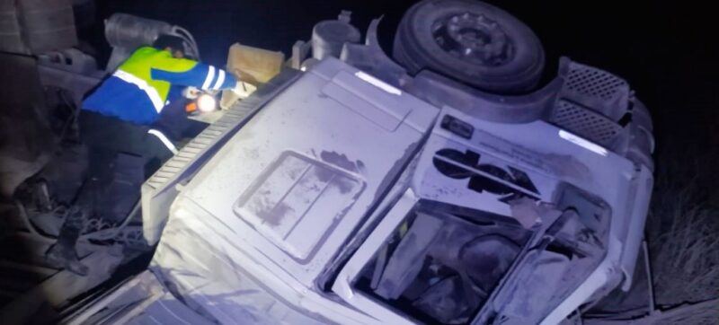 Se toma conocimiento desde el área de Seguridad Vial que en la Ruta 65 en cercanías a la bajada de Villa Sanz y Ordoqui, se habría producido el vuelco de un camión.