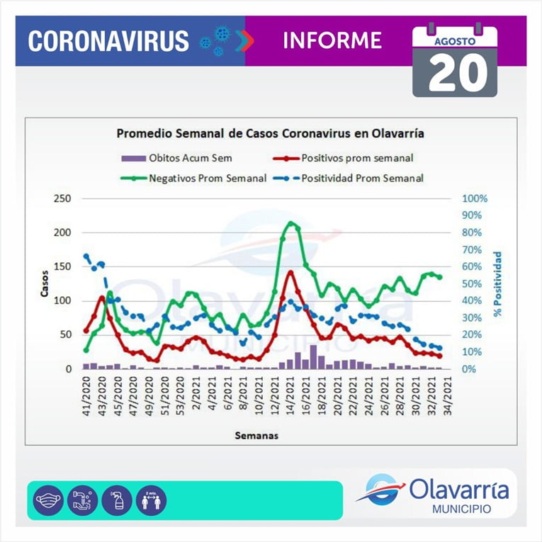 El Municipio tiene 173 positivos activos, 15590 curados en total, 35673 descartados desde el inicio de la pandemia, 72 sospechosos y 338 fallecidos.