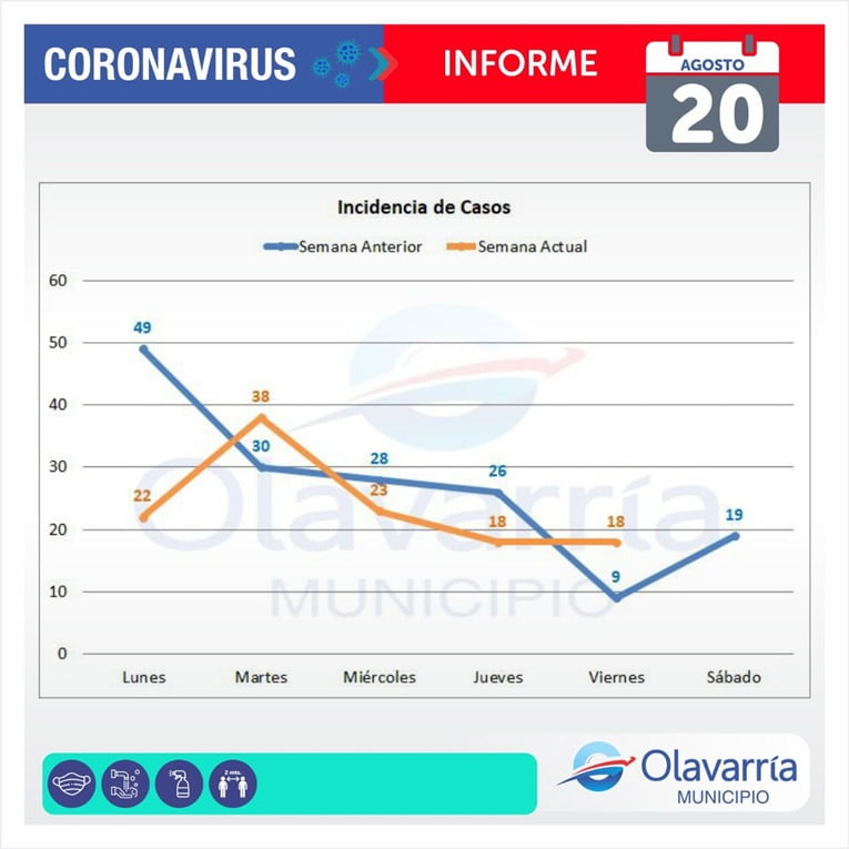 En la fecha de hoy 20 de agosto se registraron 18 casos positivos, 27 altas médicas y 162 descartados.